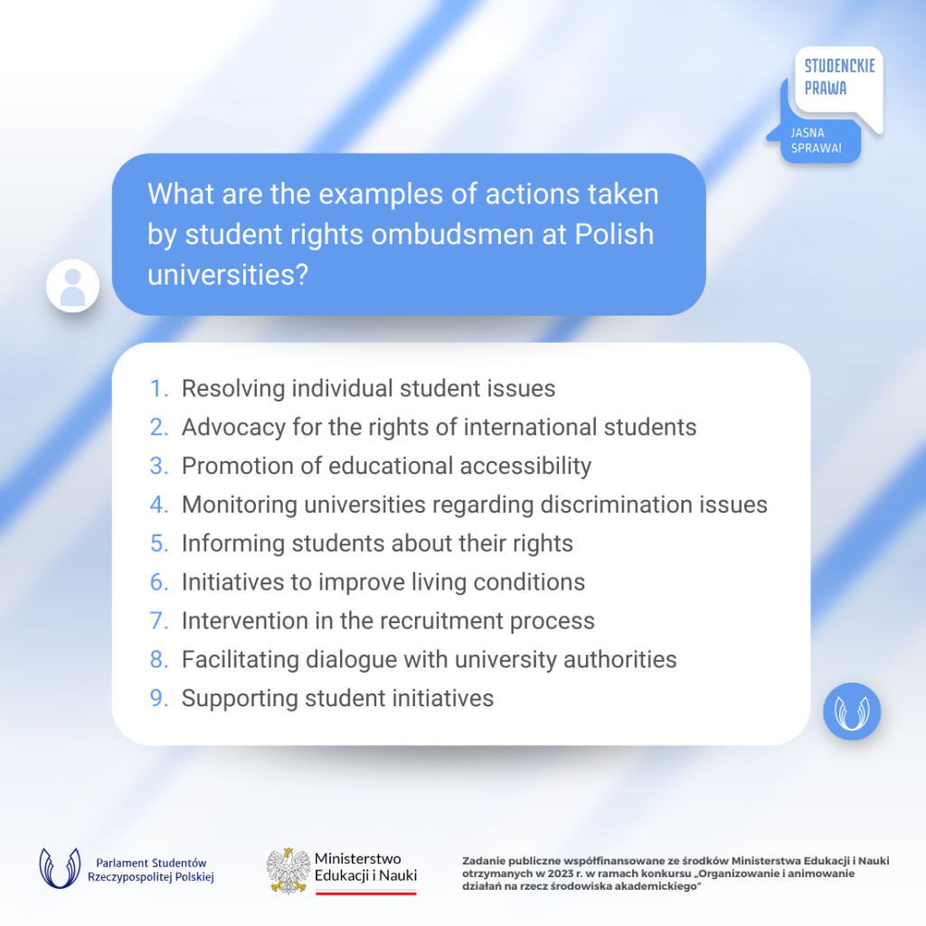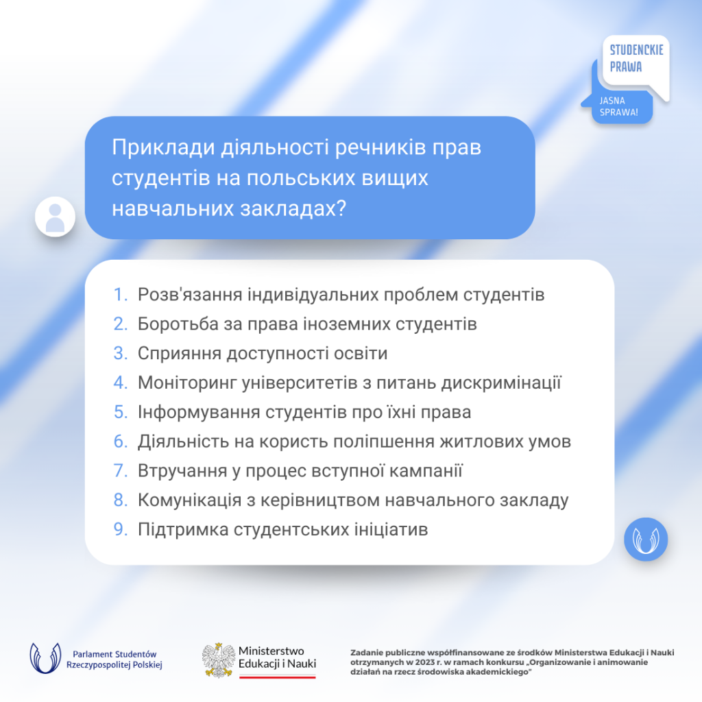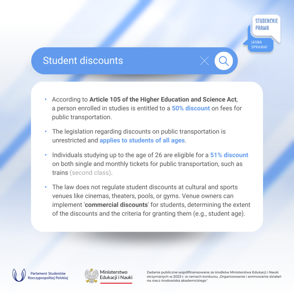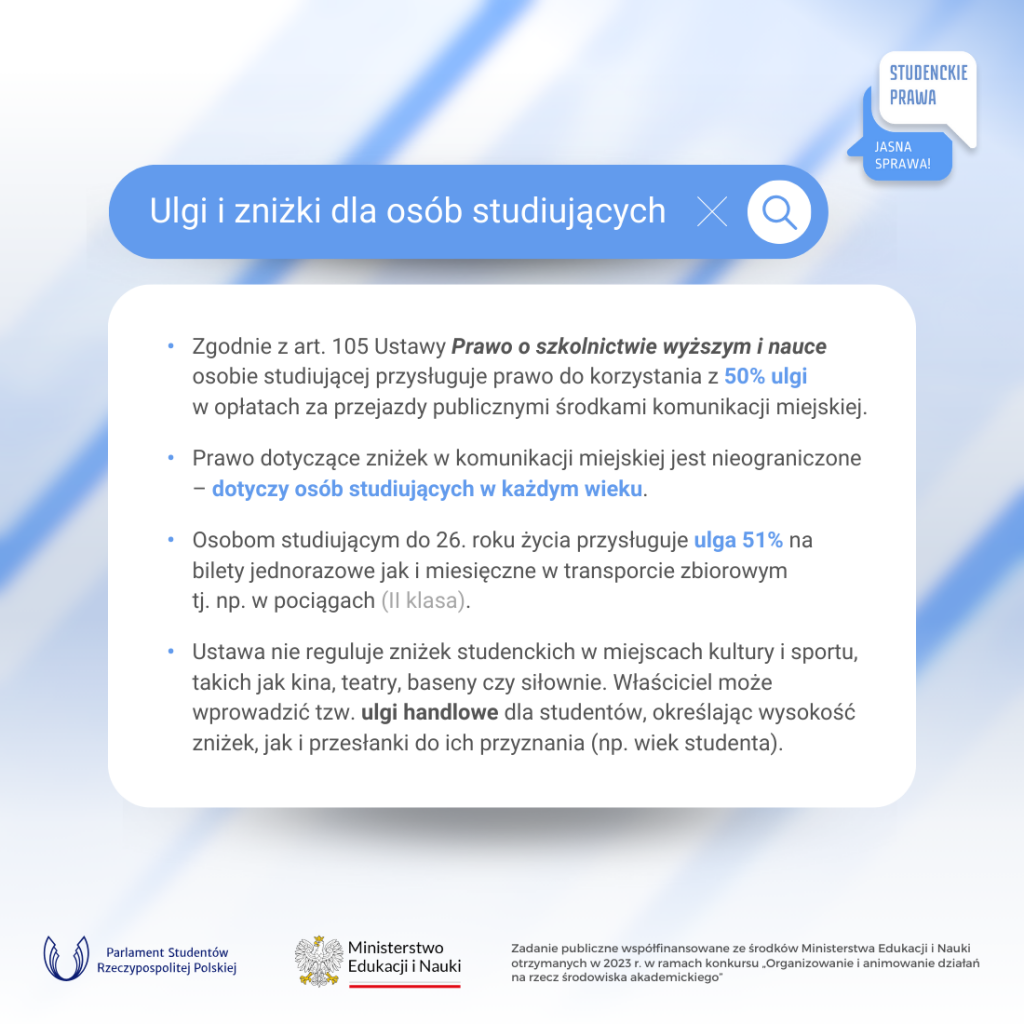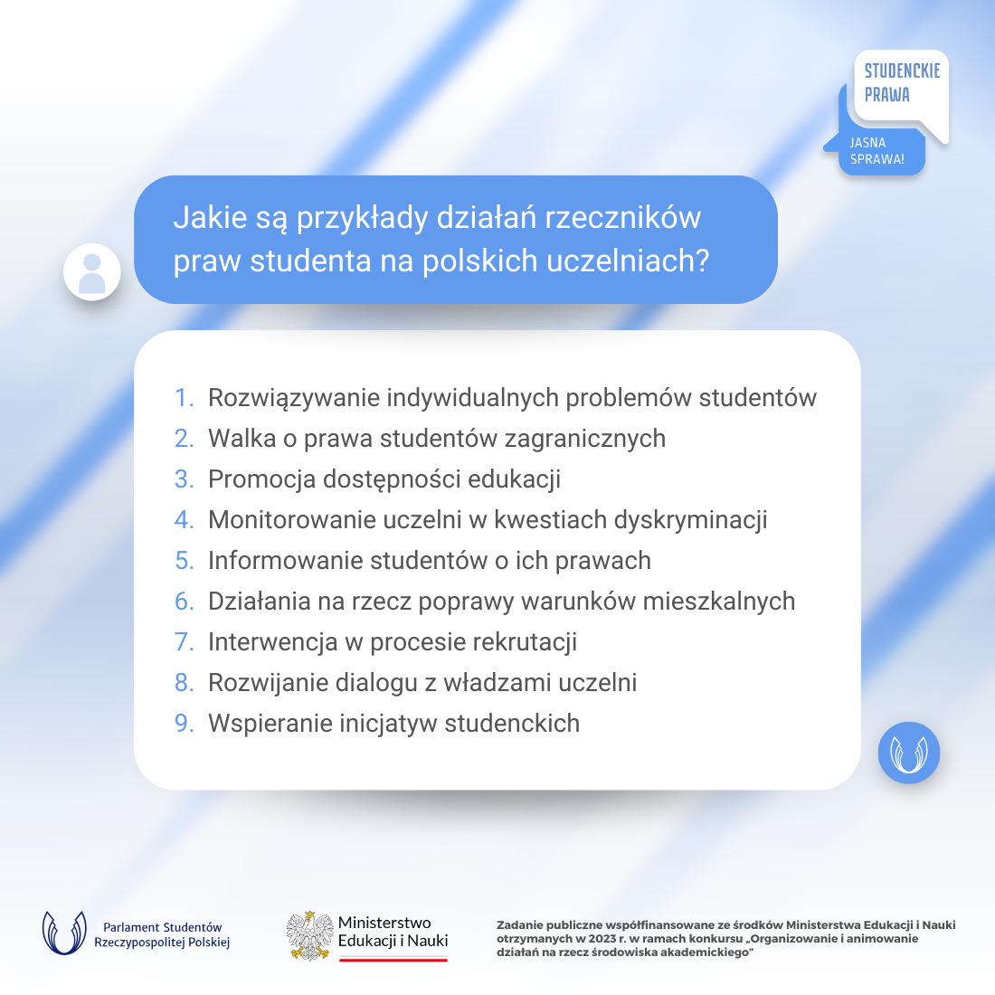 I właśnie o tym jest projekt Studenckie prawa – jasna sprawa! Jego celem jest ukazanie trudów studiowania w bardziej przystępnej formie. Najbardziej boimy się tego, co jest nieznane. Oczywiście za każdym zakrętem mogą kryć się nowości. Studia to dla wielu najlepszy czas w życiu, dlatego im prędzej uświadomisz sobie, że strach ma tylko wielkie oczy, tym łatwiej przyjdzie Ci cieszyć się ze studiowania. Zachęcamy do zapoznania się z infografikami, artykułami i publikacjami, w których znajdziesz odpowiedzi na najważniejsze pytania związane z prawami i obowiązkami studentek i studentów.
