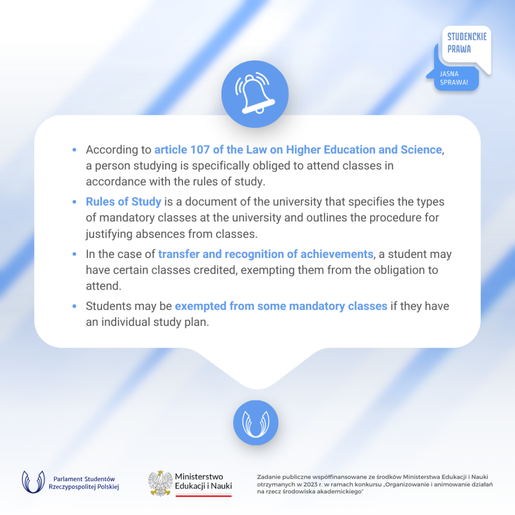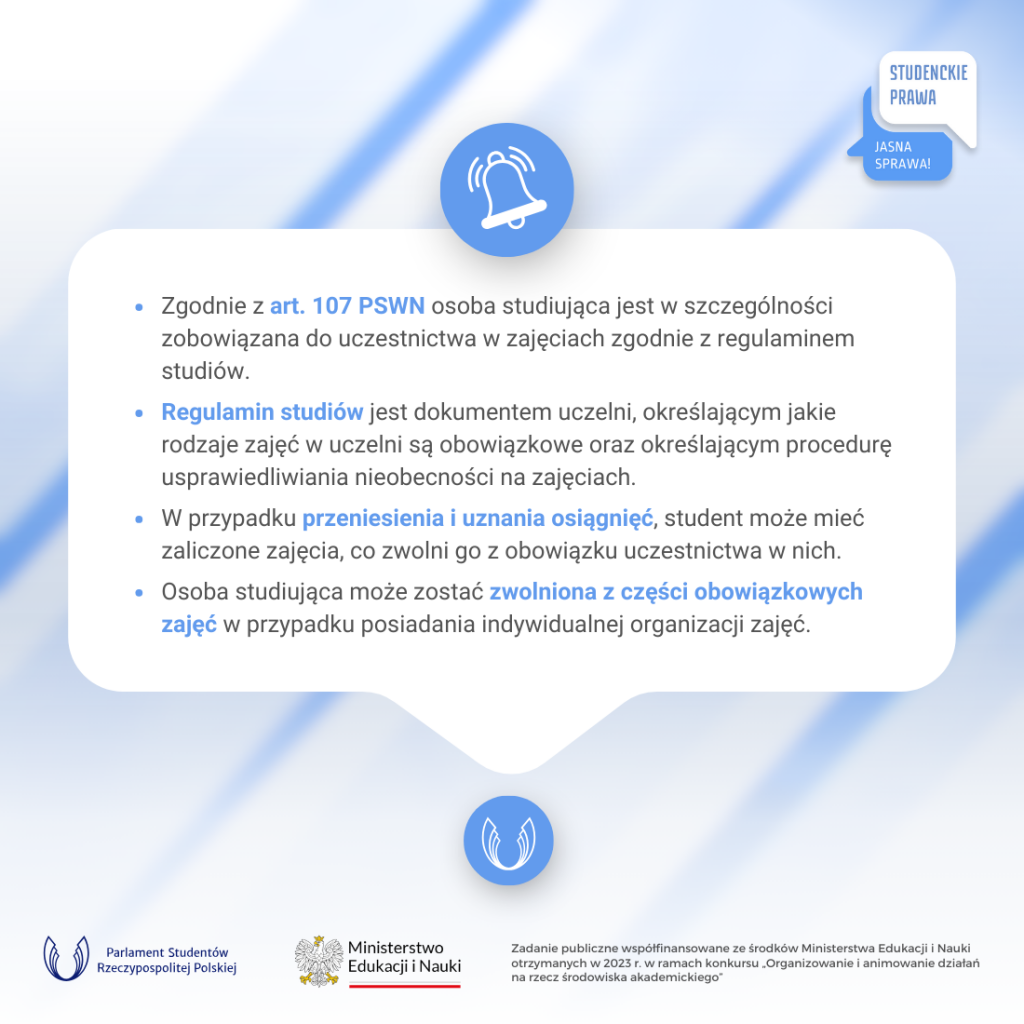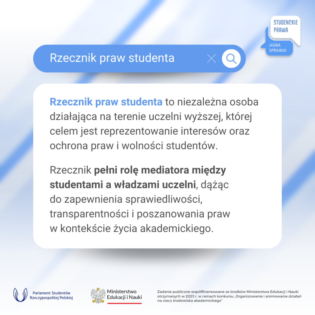 Każda studentka i każdy student otrzymuje na start równy przydział praw i obowiązków. Dlaczego warto znać swoje prawa? Bo nieznajomość prawa szkodzi. I nie chodzi o łamanie zakazów. Nie wiedząc, jakie mamy prawa, tracimy okazje i możliwości, by z nich korzystać. Każde nieznane prawo, to nieuświadomiona szansa na korzystniejsze studiowanie.